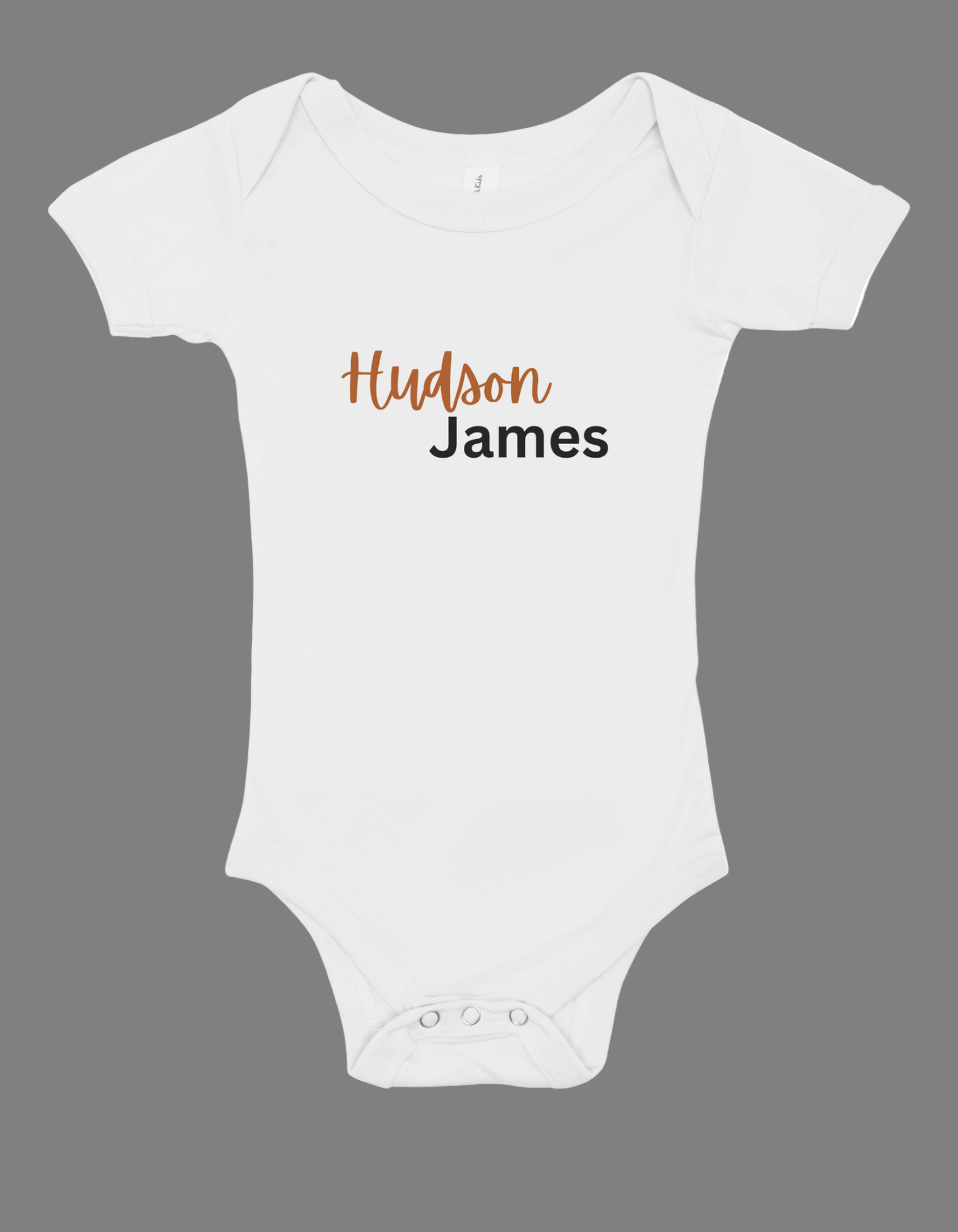 This short-sleeve, round-neck baby onesie is designed for comfort and ease of wear. Made from soft, breathable fabric, it keeps your baby cool and comfortable throughout the day. Personalize it with your baby’s name to add a special, unique touch. Perfect for everyday use or as a meaningful gift, this onesie combines practicality with personalized style. Other options available upon request.