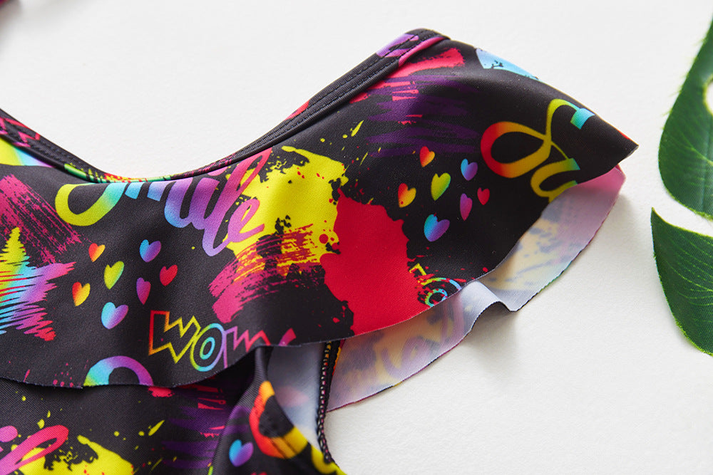 This expertly designed Girls' Oblique One-Shoulder Swimsuit offers a contemporary two-piece silhouette with asymmetrical styling. The distinctive oblique shoulder cut provides both fashion-forward appeal and comfortable wear for active young swimmers. Constructed with quality materials that balance durability with comfort, this swimwear set maintains its shape while allowing freedom of movement in and out of the water.
