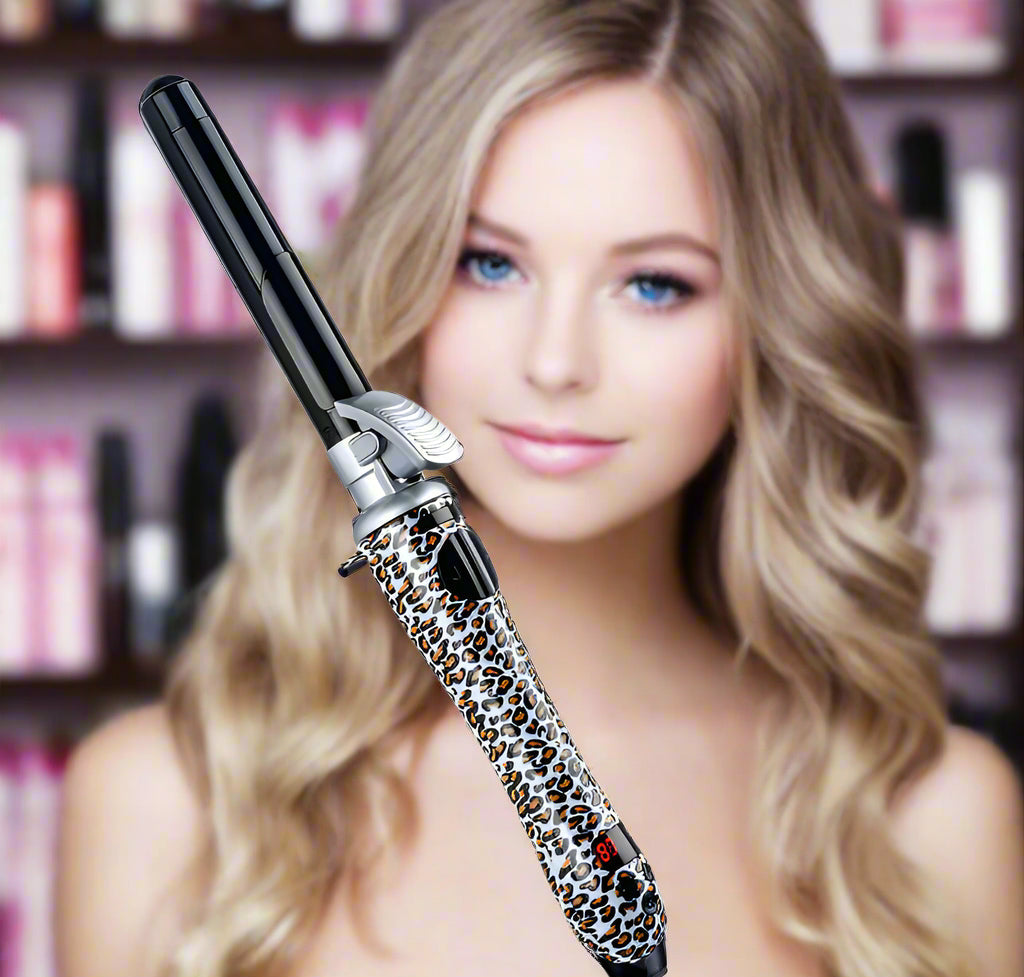 Create effortless, volume-boosting curls with our Leopard Print Curling Iron. This lazy beauty tool features an automatic 360 turning one inch barrel with an inner buckle. This curling iron can rotate in either direction and the ceramic technology make for easy styling and curls with long-lasting hold. Instantly elevate your hairstyle with this fierce and convenient hair tool.