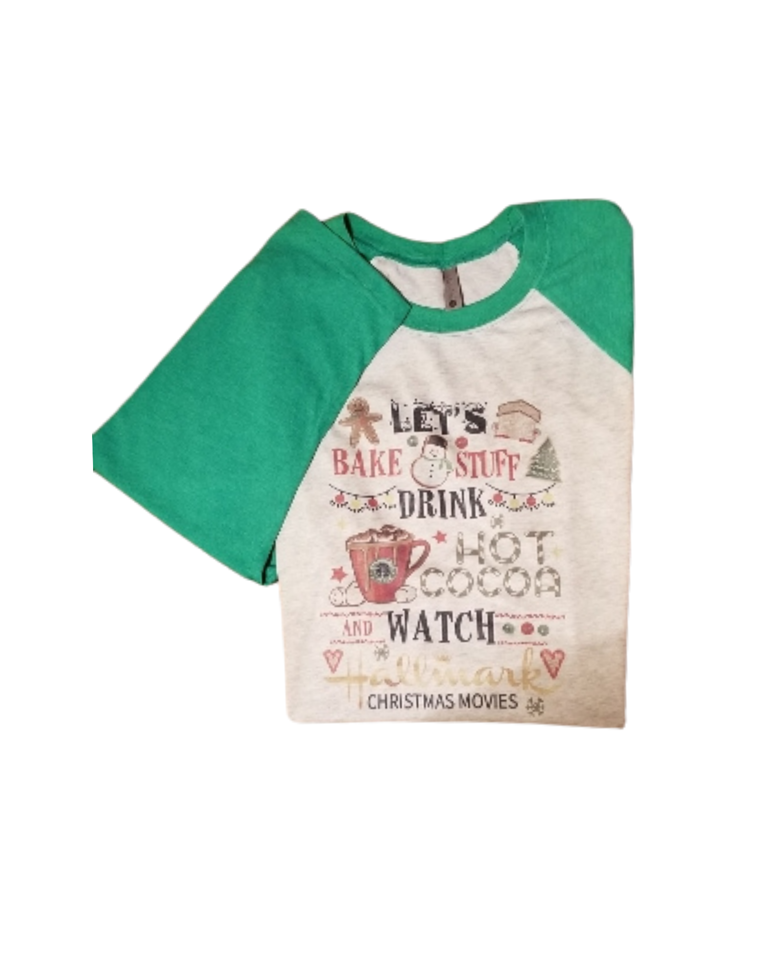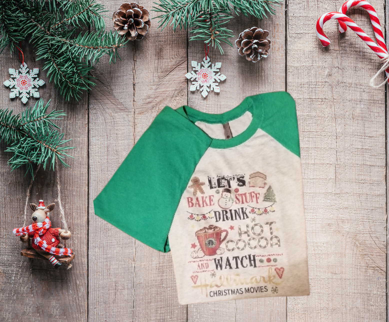 Expertly crafted for both comfort and style, the Let's Bake Stuff Raglan Shirt features 3/4 sleeves and a round neck for a flattering fit. Made with high-quality materials, this shirt is perfect for every holiday enthusiast to show off their passion for all things Christmas in a chic and comfortable way. Other options available upon request.