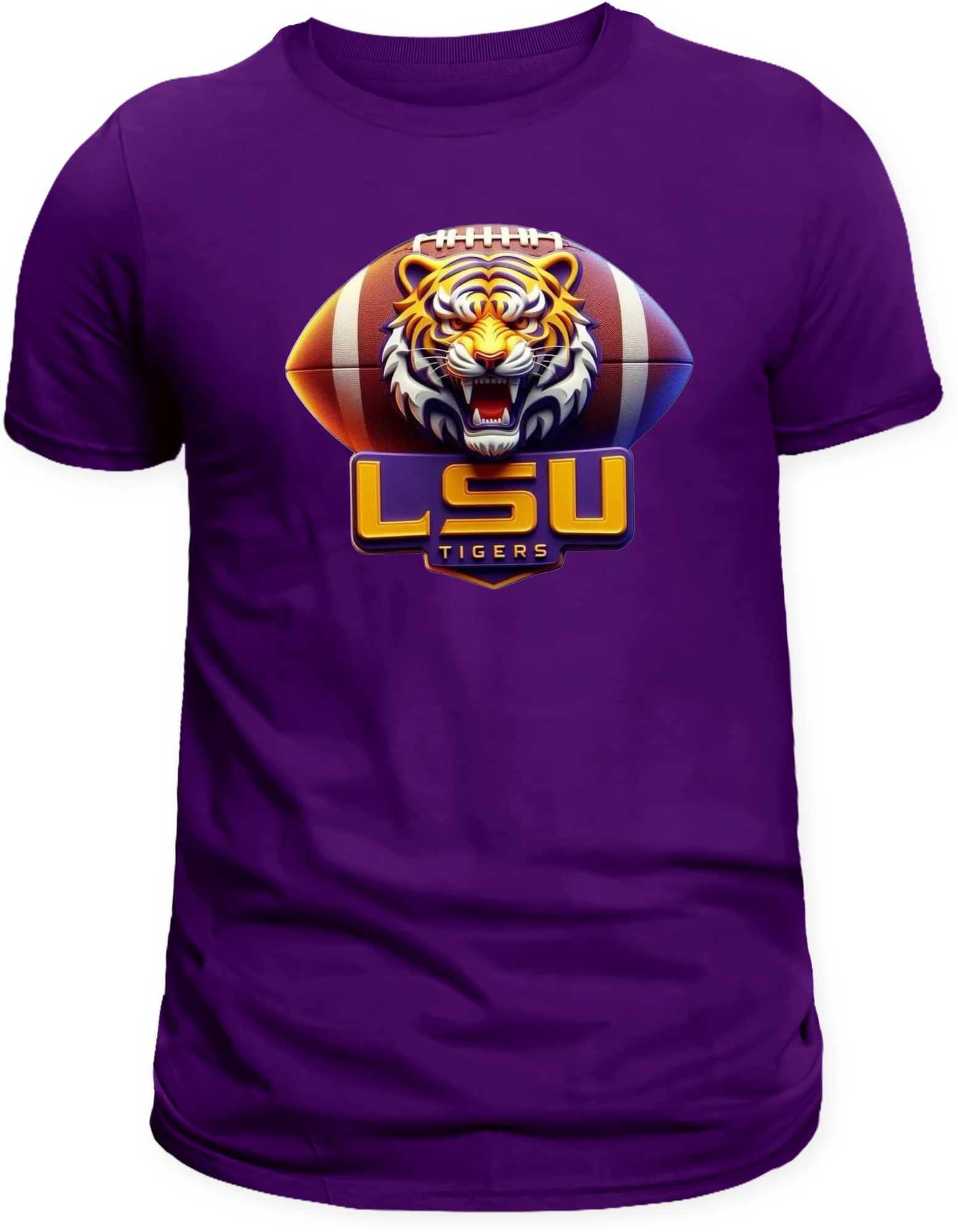 Show your team spirit with this LSU Football T-Shirt featuring a comfortable round neck and short sleeves. Crafted for both casual wear and game day, its lightweight fabric ensures breathability while supporting your favorite team. Perfect for layering or wearing on its own, this shirt combines style and comfort for dedicated LSU fans. Other options available upon request.
