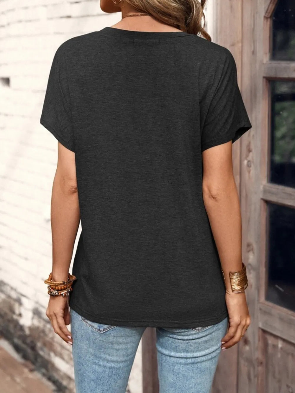 Nine Figure Half Button Short Sleeve Top