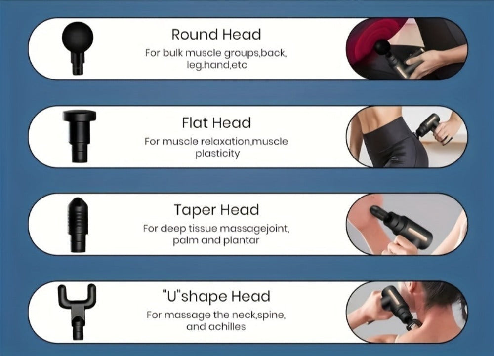 The Rechargeable Mini Massage Gun offers targeted muscle relaxation in a compact, portable design. Powered by a USB charge, it ensures convenient, cordless use anytime and anywhere. Ideal for easing muscle tension and promoting recovery, this electric massager delivers effective percussion therapy in a lightweight form factor, perfect for athletes and everyday users seeking quick relief on the go. Available with four interchangeable head attachments.