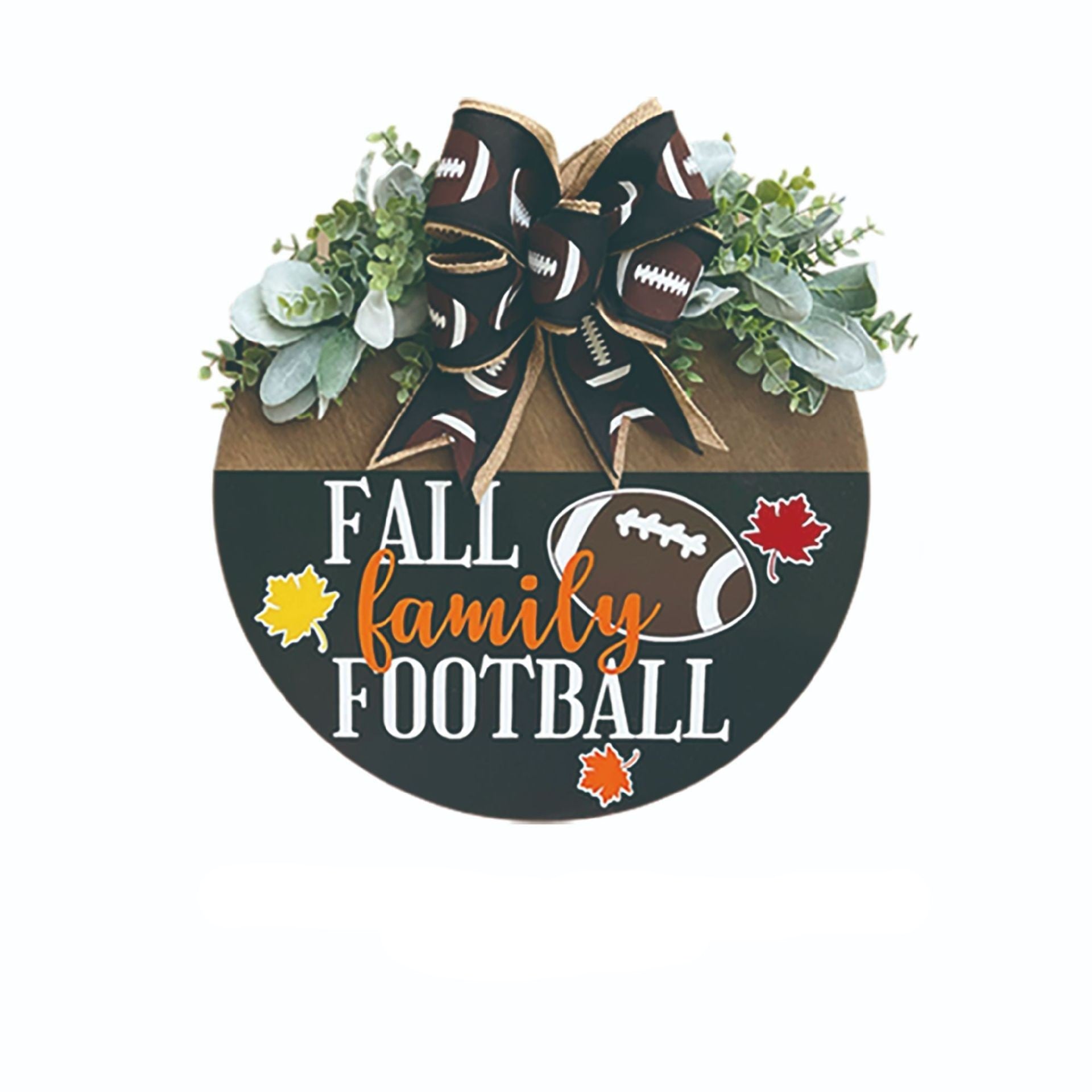 Enhance your home's entrance with this expertly crafted Seasonal Wooden Door Hanger. Its round design adds a timeless touch to your front door or porch, providing a warm and inviting atmosphere. Made from durable wood, this sign is perfect for showcasing seasonal greetings or themes, elevating your outdoor decor with subtle elegance and lasting quality. Other options available upon request.