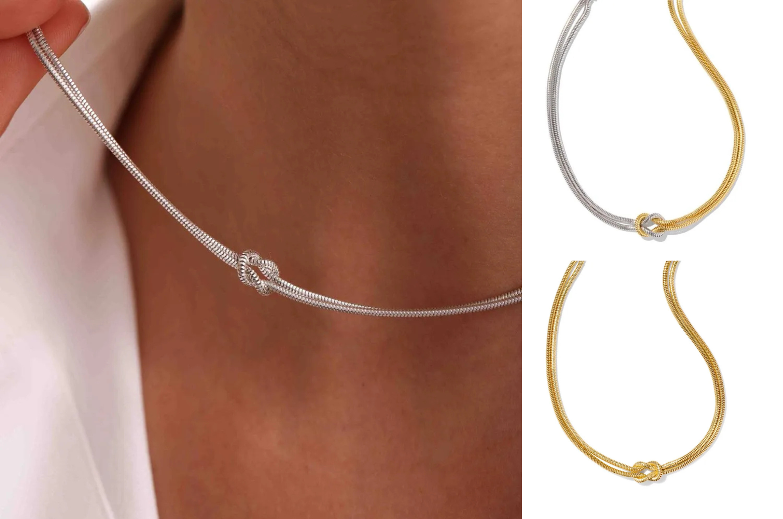 Crafted from durable titanium steel, this Simple Square Knot Necklace embodies nautical elegance with a timeless design. Its sturdy construction ensures long-lasting wear, while the square knot detail symbolizes strength and unity, making it an ideal accessory for those who appreciate marine-inspired craftsmanship. Perfect for daily wear or special occasions, this necklace blends subtle sophistication with expert quality.