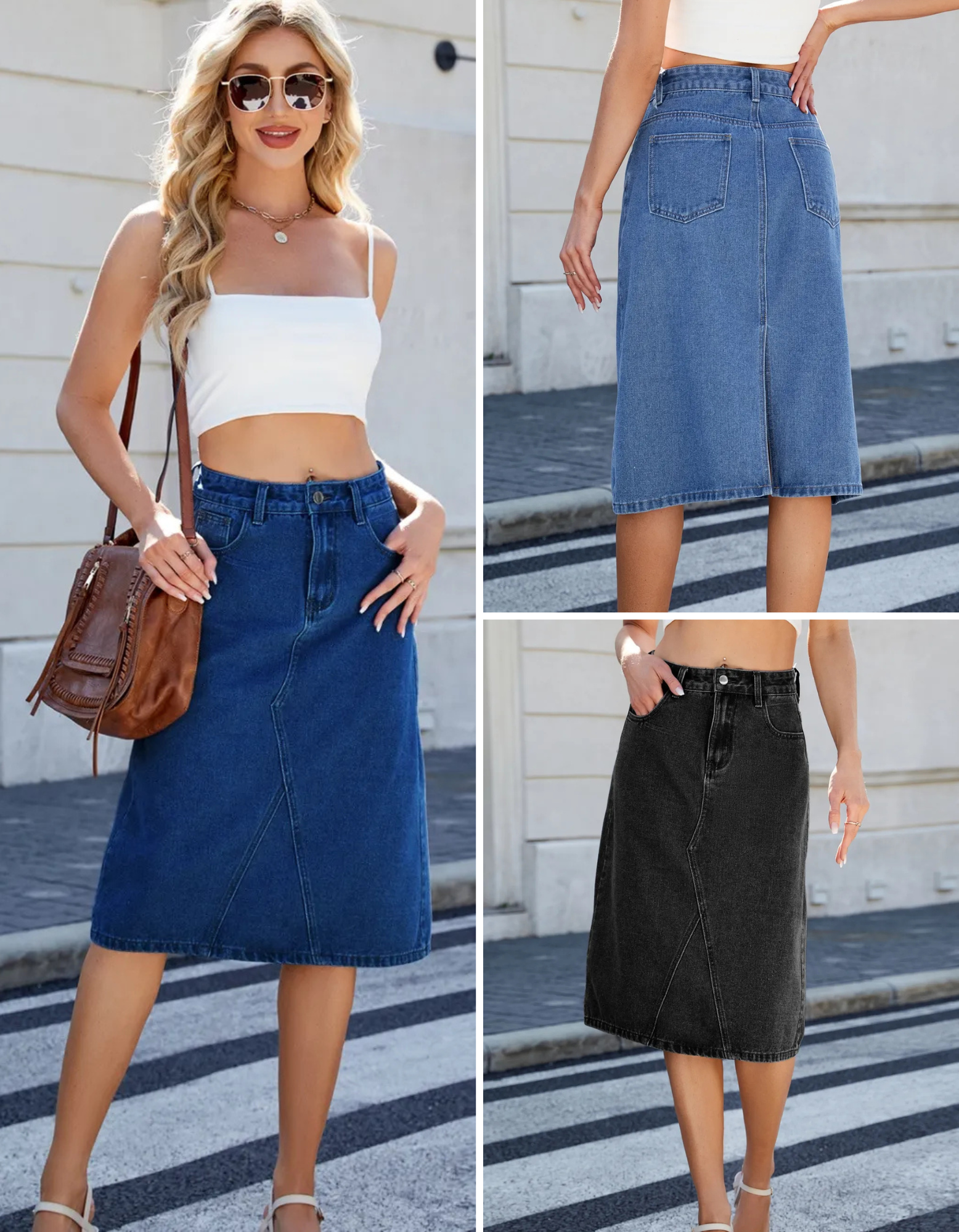 Women's Back Slit Midi Denim Skirt