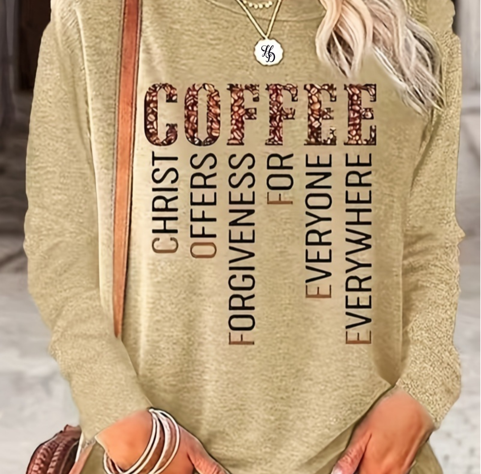Show off your love for coffee and Christianity with our Women's Christian Coffee Shirt. This casual top features a comfortable round neck and long sleeves, perfect for everyday wear. Stay cozy and stylish while spreading your faith and caffeine addiction.