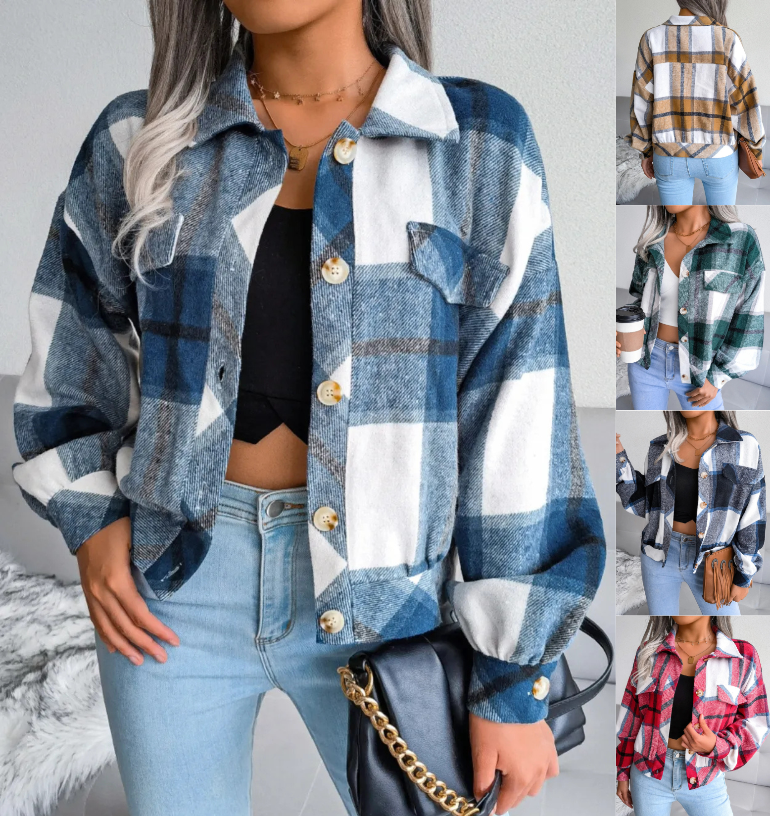 This Women's Plaid Cropped Jacket combines timeless style with practical design. Featuring a collared neck and long sleeves, it offers a structured yet comfortable fit. The button-down front allows for easy layering, while the unlined construction ensures a lightweight feel, perfect for transitional seasons. Its cropped length adds a contemporary edge to the classic plaid pattern, making it a versatile piece for both casual and polished looks.
