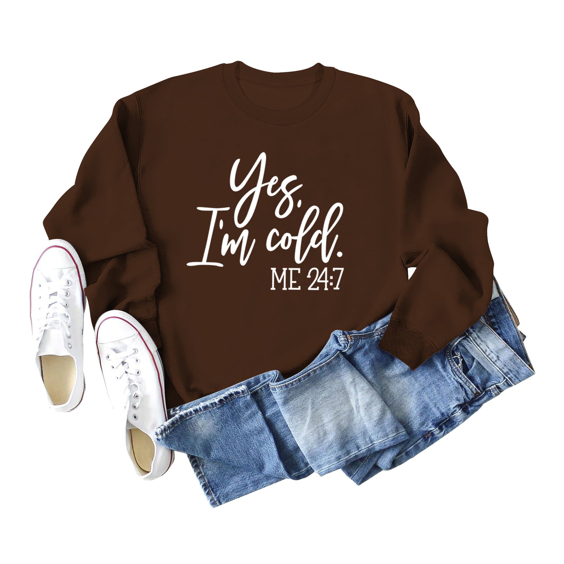 Stay cozy and stylish all day long with the Women's Yes I'm Cold Me 24:7 Sweatshirt. Made with soft and breathable cotton, this crew neck sweatshirt is perfect for everyday wear. With its fun and playful design, you'll be sure to make a statement while staying warm.